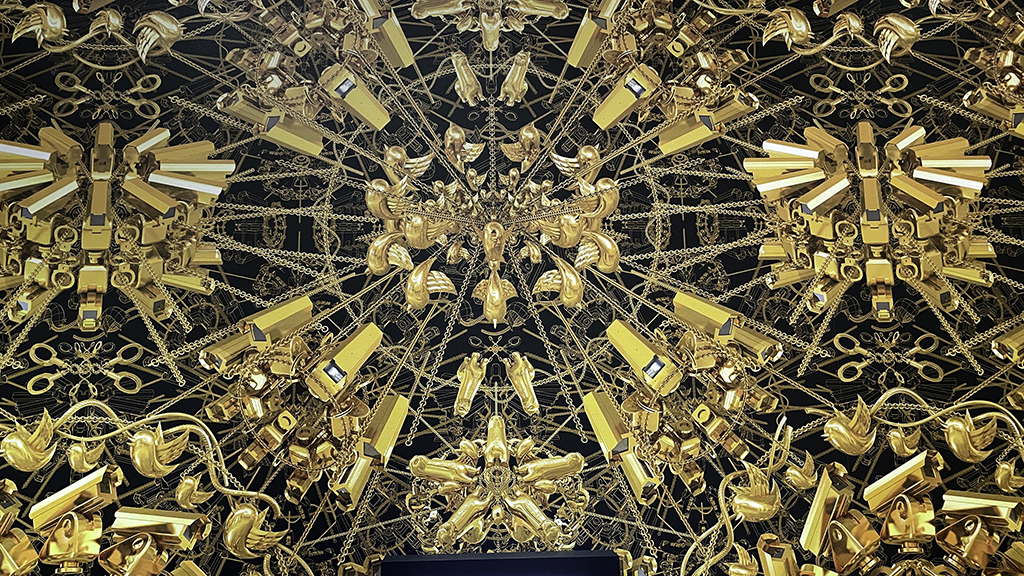 At the downtown location, the exhibition takes you on a journey beginning with the artist’s early years in New York. These early works set the stage for Ai’s ongoing exploration of art, history, politics, cultural questioning, challenge and change. His works are loaded with symbolism and inspire deep thought and reflection. Beautiful antique furniture is deconstructed, changing its original purpose from a finely crafted piece of furniture, now reconfigured to a new form as sculpture. Viewers enter a darkened gallery devoted to the Animals of the Zodiac, which are mounted so that one can walk among them and view the highly rendered details. The exhibition also includes a re-creation of the room Ai was confined to while under arrest in China. More than one gallery features works using Lego bricks, including ones devoted to The Mueller Report. Several videos are showing in a projection room: Cockroach, 2000, Human Flow, 2017, and Coronation, 2020. Shorter videos are included throughout the exhibition.