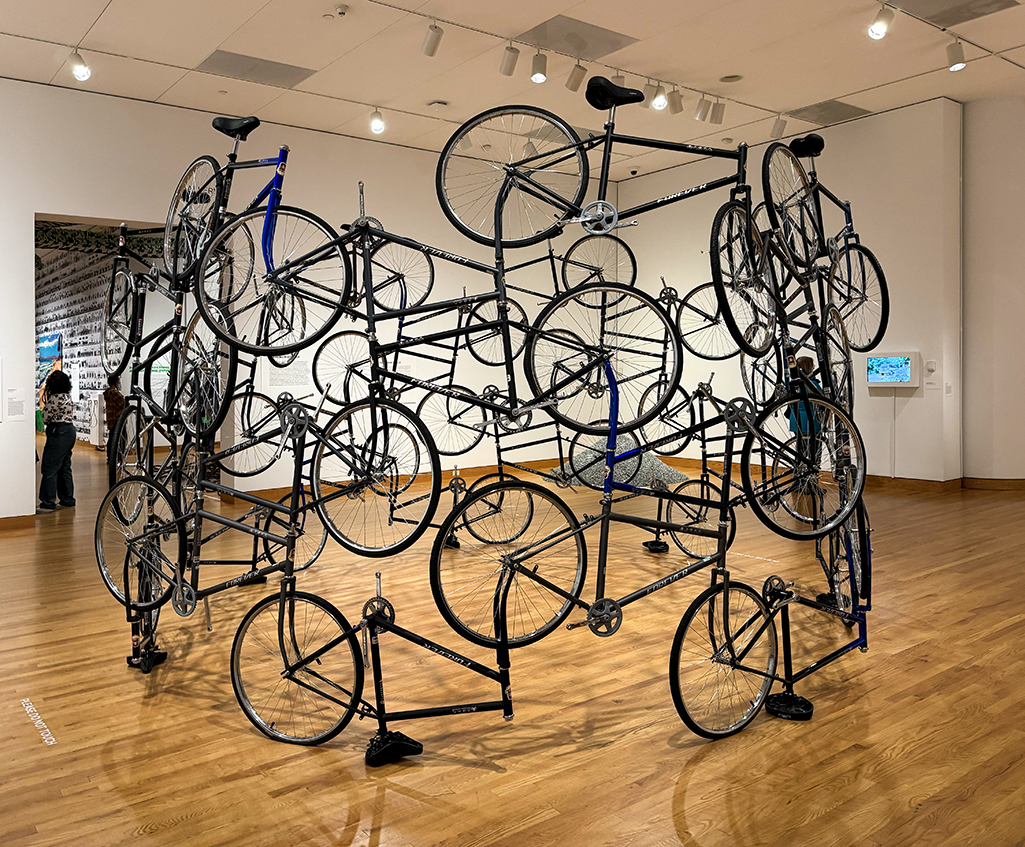 Thank you for drawing attention to this showing of what is obviously a powerful and diverse body of work. Talk about found object in Hanging Man for simplicity in making a statement, my intrigue in his work extends to see his Mueller Report w Legos, the Bicycles, and what look to be magnificent Water Lillies, live!