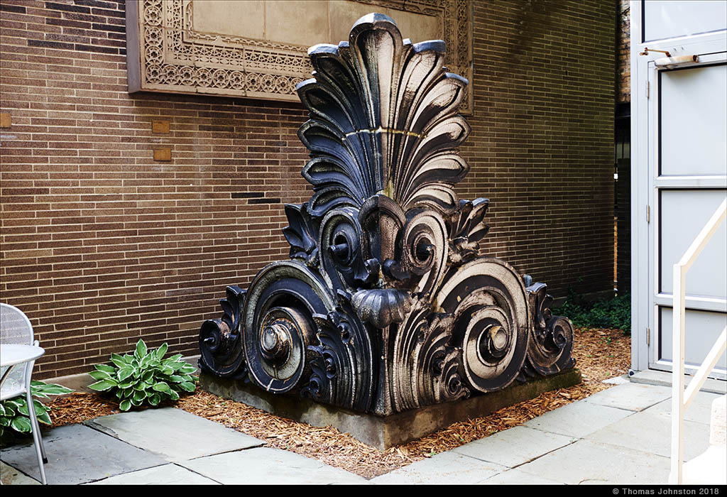 Another day we went to the Graham Foundation to see their historical building and to view the current show of Torkwase Dyson‘s sculpture and beautiful drawings. It is rewarding to spend time in their bookstore and in the courtyard, standing face to face with several artifacts of Chicago’s architectural history.