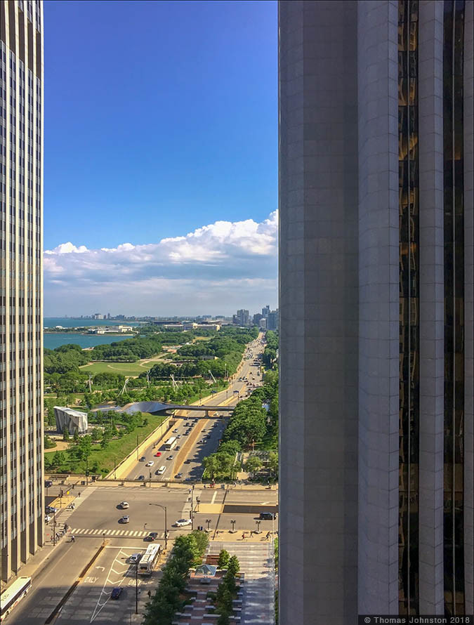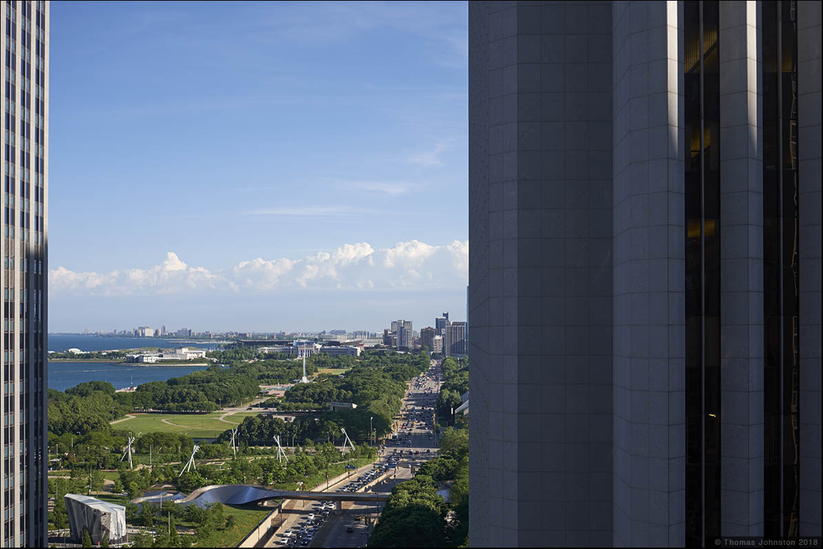 In the previous posts I’ve included some images from our travels in May and June, centered in Chicago with a road trip to Plano, Illinois and Columbus, Indiana to see examples of modern architecture that we had been wanting to see. Chicago framed that road trip, timed to coincide with The Blues Festival, Printers Row Lit Fest & Book Fair, and specific gallery & museum exhibitions. In addition to the activities outlined in those posts, some of the other shows we saw are on view through much of this summer. Chicago of course is one of, if not the prime example of city as architecture, an international city that draws citizens from around the world to live, work, and visit its many treasures.