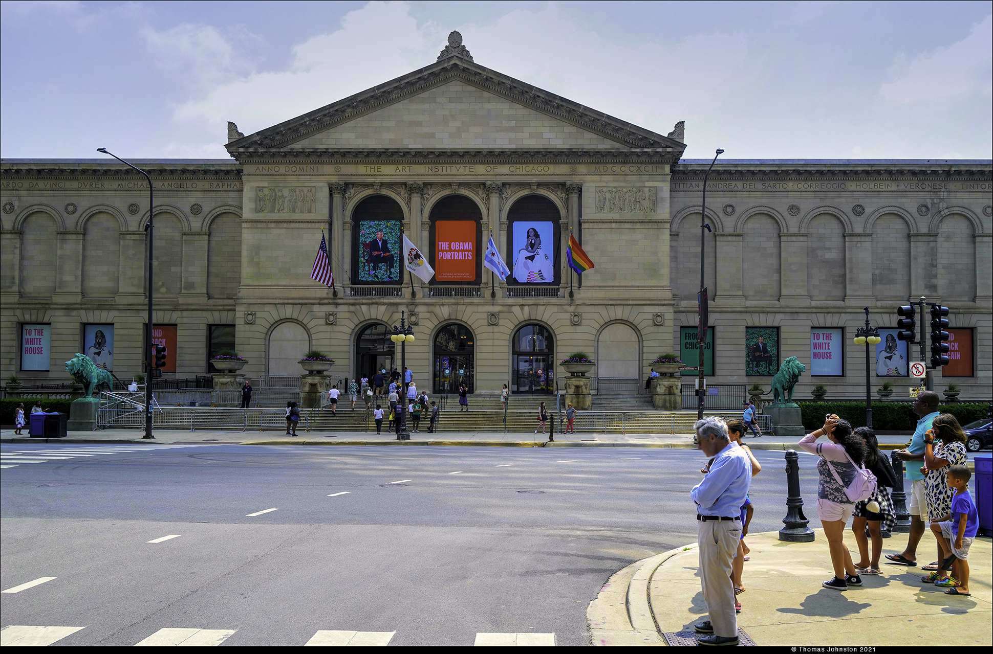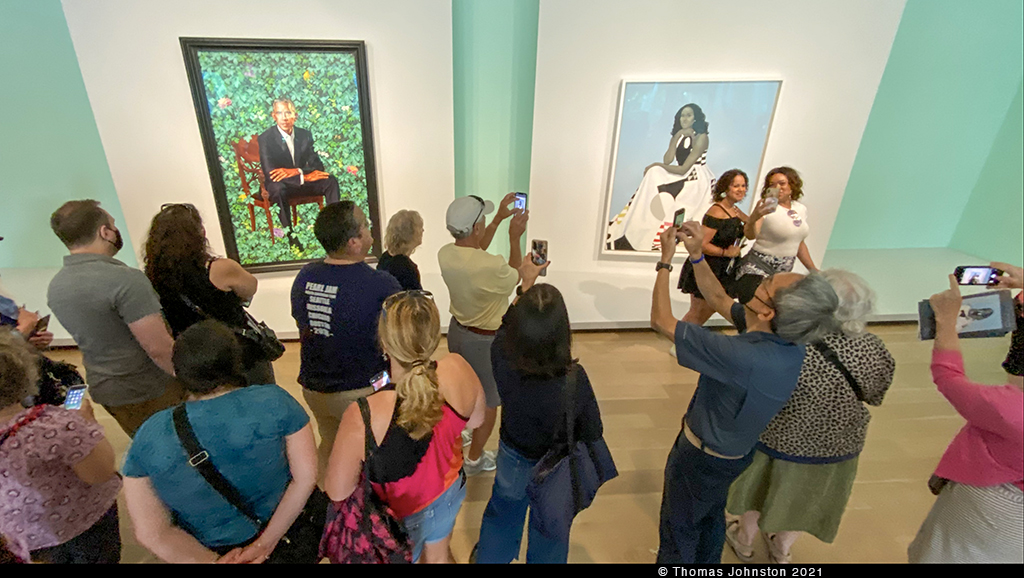 In June we cautiously took a flight, masked, to visit family in Chicago. We arrived just as the city was lifting the mask mandate and some were anxious to have their faces exposed. There was such a sense of hope in the air, though my feeling was that many people (the majority) weren’t ready to go mask-less in public. On our first visit to a museum in over a year, The Art Institute had just adopted optional mask wearing for vaccinated visitors though it was evident that most of the visitors chose to continue masking-up, especially noticeable in the popular exhibition of Monet that was just ending. The following week, on June 18th, the celebrated Obama Portraits, Barack by Kehinde Wiley, and Michelle by Amy Sherald, opened to enthusiastic audiences. We joined others in a responsibly masked and socially distanced line as we advanced to the gallery to see these two beautiful paintings.