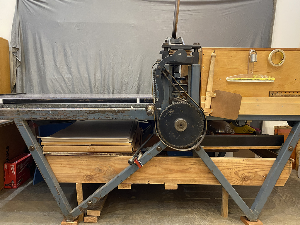 This press is located near Olympia, Washington and is fully functional and is a joy to use for stone and aluminum plate lithography, monotype, and relief printmaking.