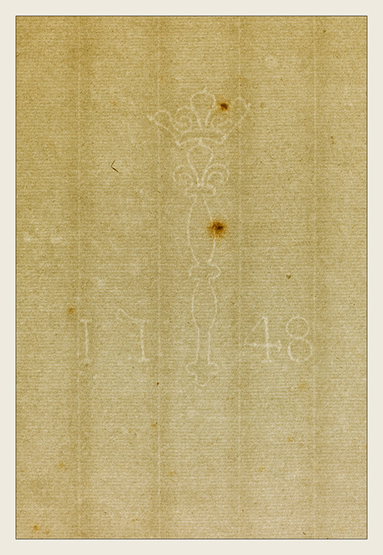 Amongst the treasures in my studio is a collection of antique, handmade papers, old (18th & 19th c., some earlier), foxed, watermarked, several with notations and hand written page numbers, from years gone by, sheets housed in folios, now residing in my flat files along with early 20th c. examples. Some have been used in a few of my intaglio prints with chine-collé, marrying old with new, that too, yields to time, becoming something from another era. Here, for your enjoyment, are several digital representations of a dozen sheets, some scanned, others from the copy stand, some backlit, in an attempt to show the laid and chain lines, watermarks, and occasionally, the tears of the papermaker.