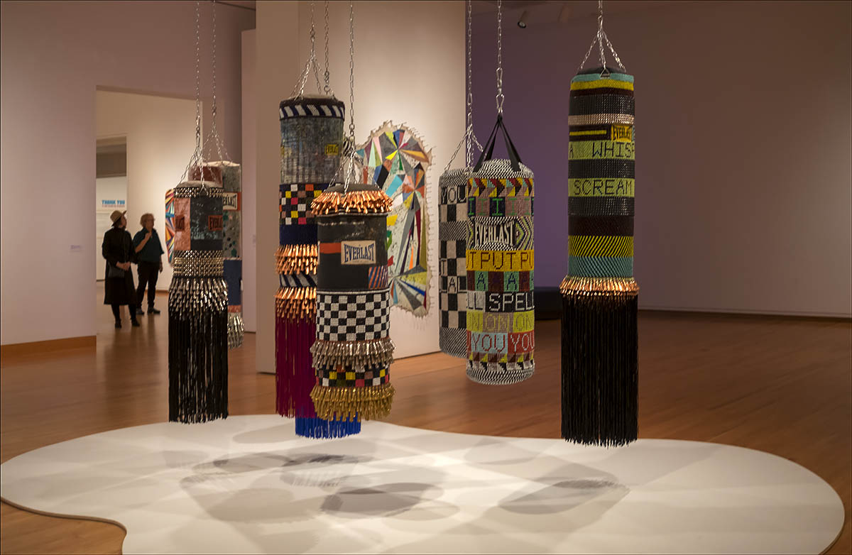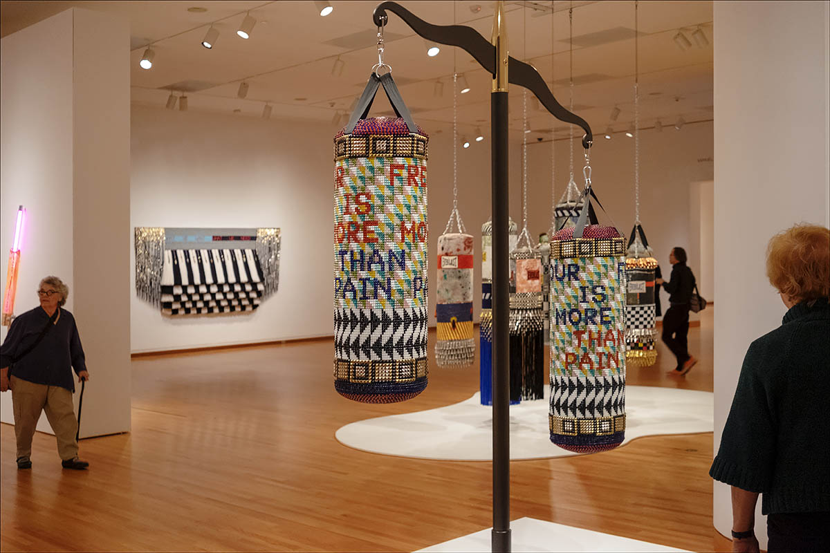In January we saw an excellent exhibition, In This Imperfect Present Moment, at Seattle Art Museum (in one of the third floor galleries, through June 16, 2019). We had planned to see that exhibition again, and especially the major exhibition of Jeffrey Gibson’s Like a Hammer, which is on through May 12, 2019. This is one of those exhibitions that makes a visit to SAM so rewarding, an exhibition that makes a strong impact even on those who might not be familiar with Gibson’s art. It takes you in, fills your senses, and leaves you wanting to see and know more. Organized by the Denver Art Museum, this exhibition brings together some 65+ works from the past decade. Thanks to the vision and commitment of the Seattle Art Museum and their curator of Native American Art, Barbara Brotherton, SAM is one of the venues to present this first rate exhibition. The range of works gives viewers much to see and experience, with Gibson referencing diverse cultural elements, from flags and punching bags to quivers and rawhide drums. There is so much to take in, so much to see, that visits to the other galleries had to wait until next time. I’m looking forward to visiting Gibson’s SAM exhibition again and seeing more of his art in the future — such as his inclusion in this year’s Whitney Biennial (May 17 to September 22, 2019). As always, it’s a pleasure to live close to SAM with its exhibitions of art from many world cultures, past and present.