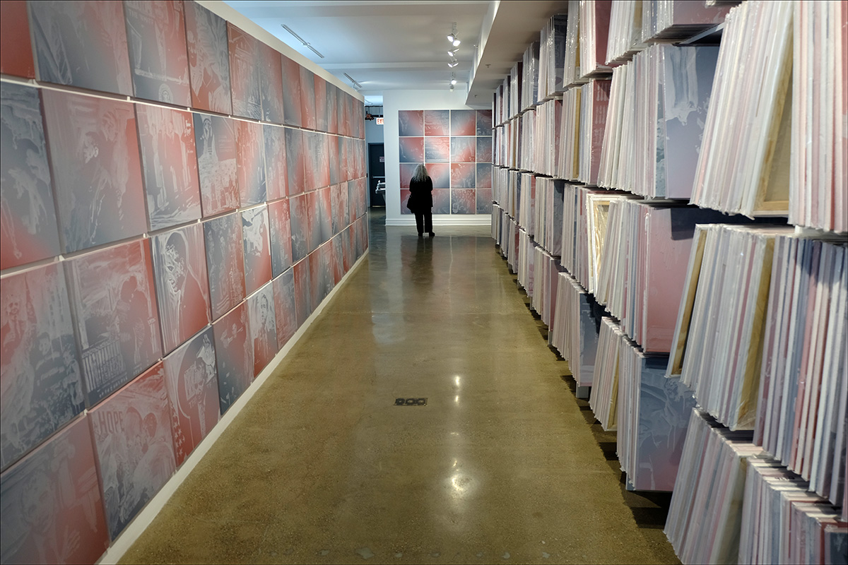 I’ve written about Theaster Gates’ Stony Island Arts Bank in a previous post, and this time the current exhibition is Rob Pruitt: The Obama Paintings. This series, a painting each day that the President was in office, make for a moving tribute and a reminder of the dignity of the presidency and the many truly great advances that occurred during Obama’s time in office. Each painting is a 24” square canvas with a unified surface of muted red and blue, with an image from mass media loosely brushed in a fluid white. Directly executed, these 2,922 paintings are a reminder of the positive, even though (a segment of) the political machine fought hard, and continues, to obstruct his every achievement. On through August 25th