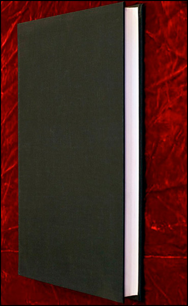 Black linen bound sketchbook of acid free paper with non-adhesive pocket; overall dimensions: 12 ¼” x 9 ¼” x 1 1/8”
