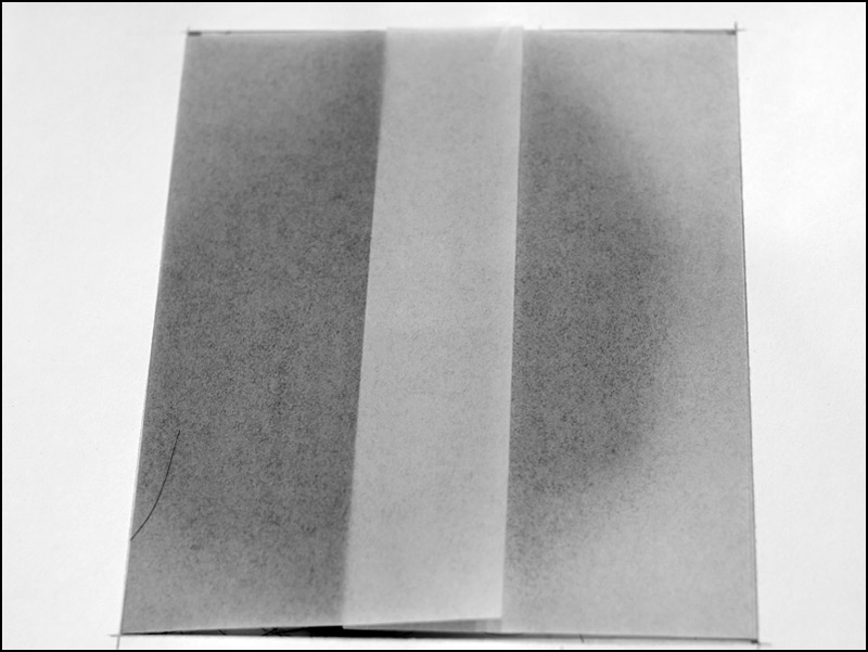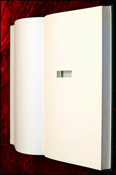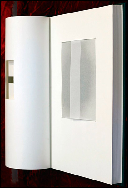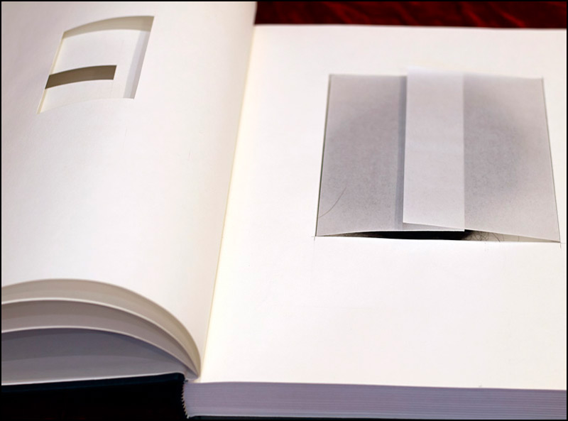 Who among us has not come across something left in a book, perhaps a bookmark that marked a place left off, to be returned to, or a list, note, or letter perhaps? And books come to mind that were used to hide or smuggle various items, hidden in a seemingly harmless book, that is, depending on what the content of the writing is. Add to this genre, Revolver, in a black, linen bound sketch book, that when opened begins with a minimalist aesthetic that unfolds with a few pages to open to the translucent pages of a pocket to reveal…..
