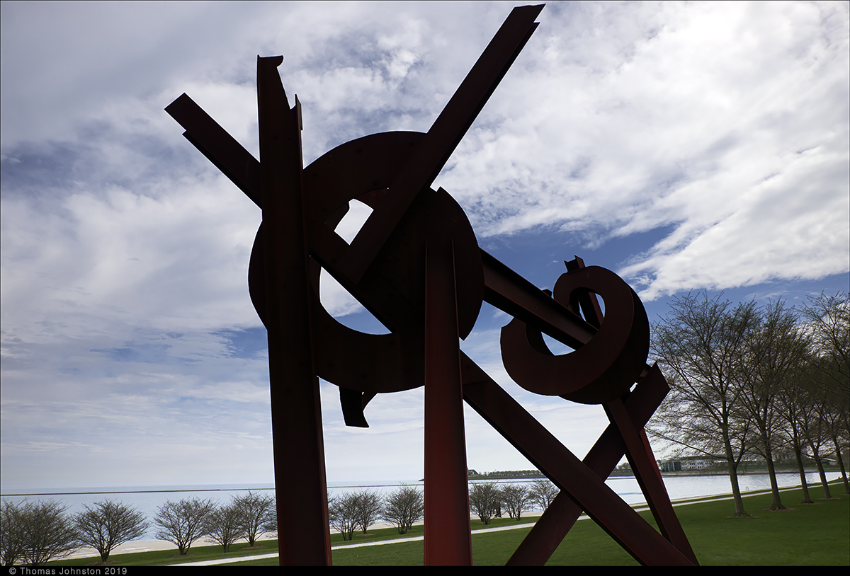 During our walks in Chicago, we made several visits to see specific outdoor works, especially Magma by Mark di Suvero and Flamingo by Alexander Calder. Even when you see works repeatedly, over a period of years, and think you know them, one can always see something new, gain a better understanding or appreciation, perhaps even see a subtle detail overlooked.