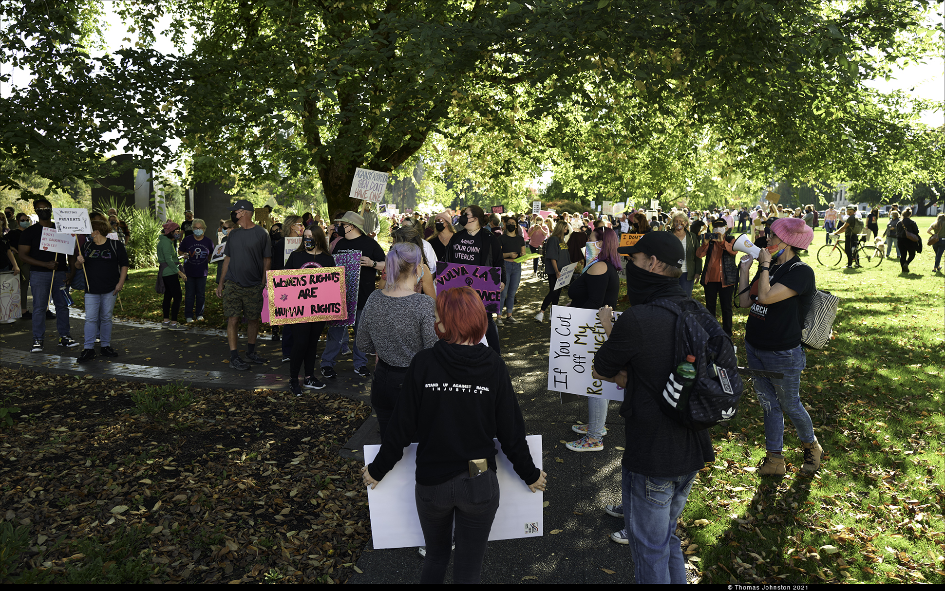 Olympia, Lacey, Tumwater, Tacoma, Seattle, joined hundreds of cities across the U.S to rally with tens of thousands of people for support of Reproductive Rights – here we gathered at the State Capitol on October 2, 2021.
